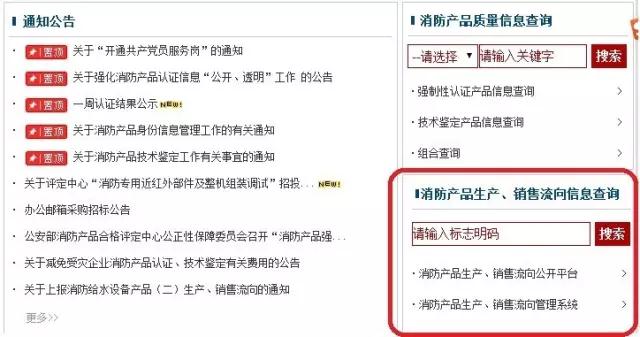 官网:www.cccf.net.cn 其中有“消防产品生产、销售流向信息查询”栏